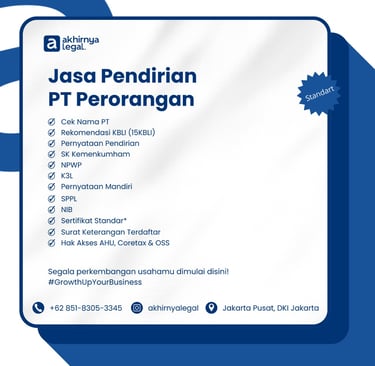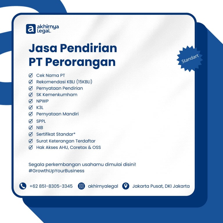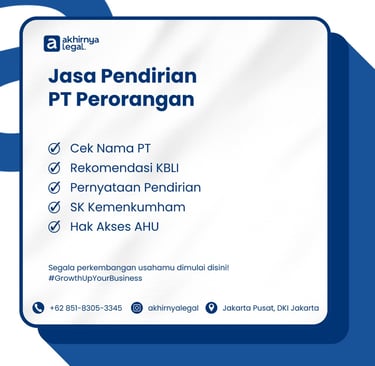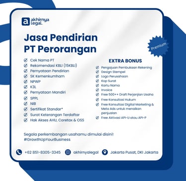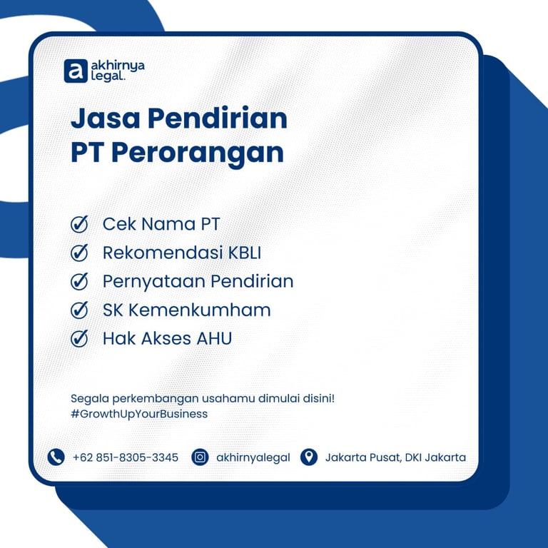 Proses pendirian PT saya jadi jauh lebih mudah dan cepat berkat bantuan tim Akhirnya Legal. Profesional dan responsif!